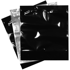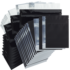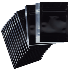 1/8 Ounce Matte Black & Clear Mylar Bags + Labels - (100 qty.)