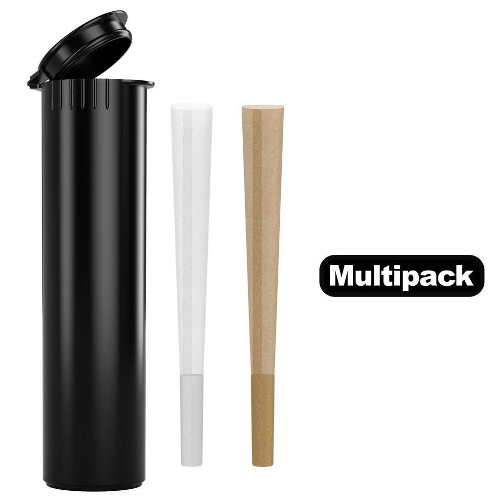80mm Wide Child Resistant Pre Roll Pop Top Tubes. Perfect for cartridges, pre-rolls, dog walkers, minis and much more! High quality pre roll cartridge and joint tubes, available at bulk wholesale prices. Perfect multipack for multiple pre rolls per tube.