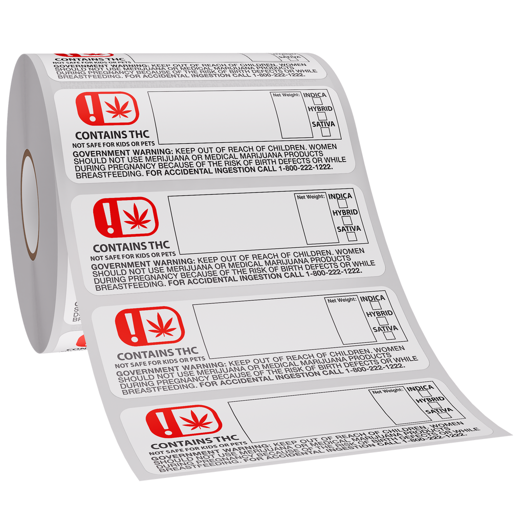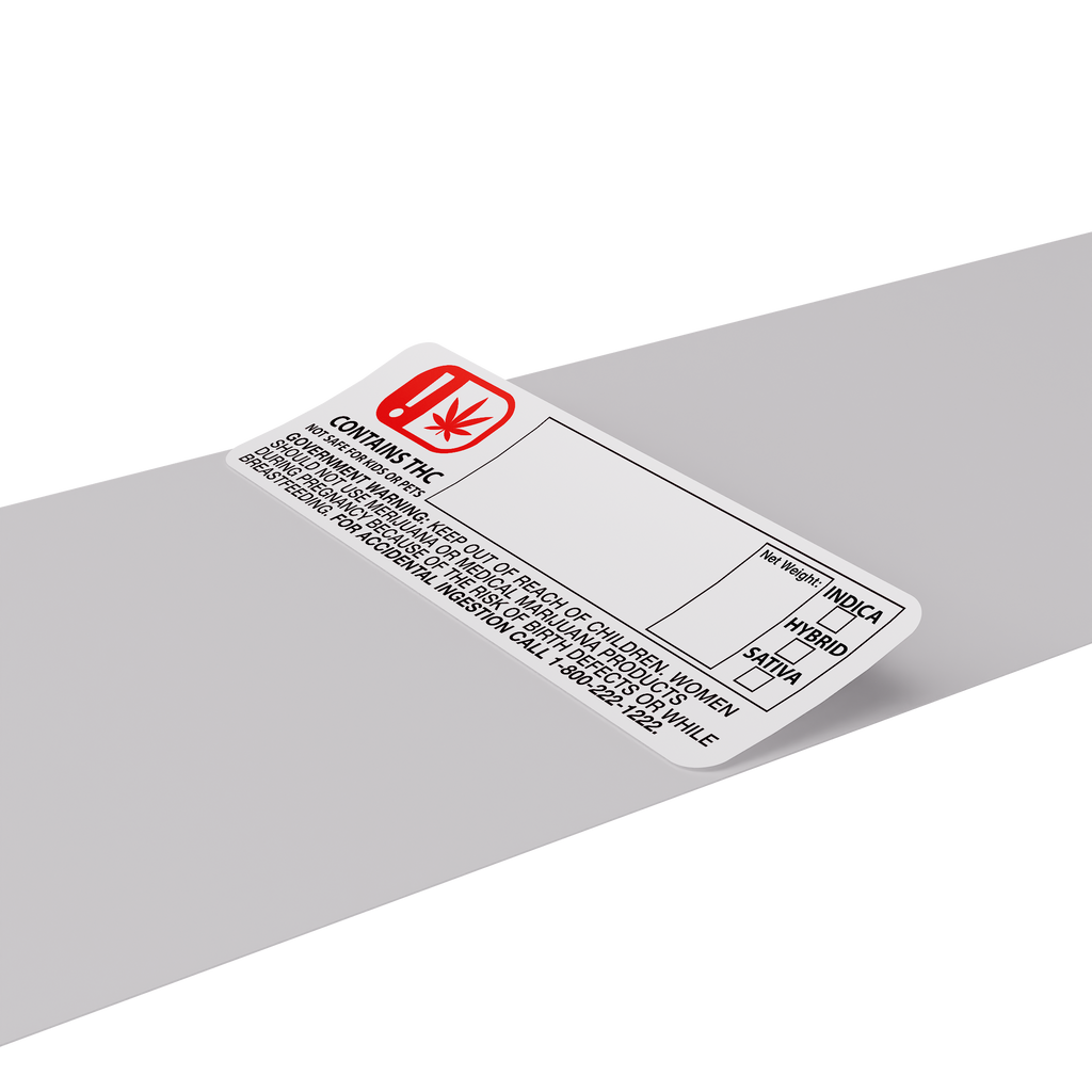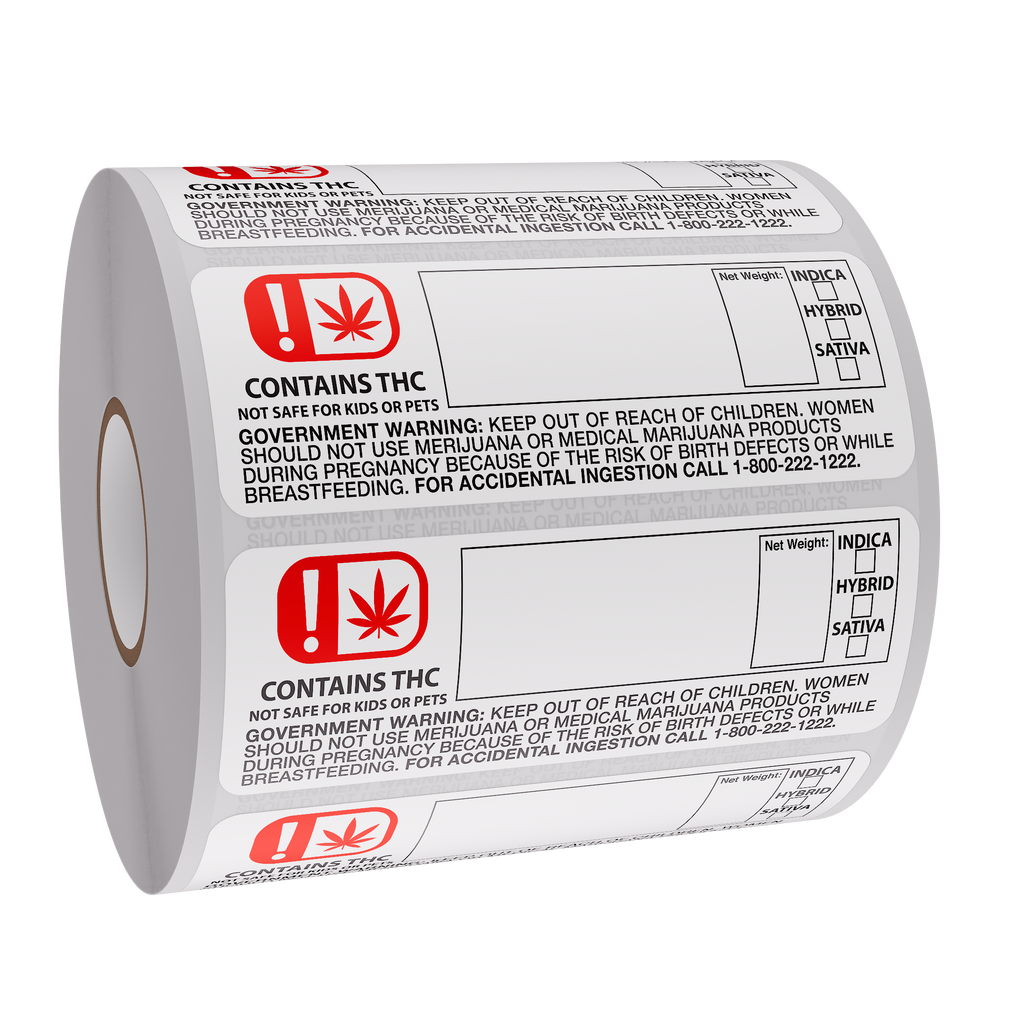 The 3"x1.25" label provides space for the strain name, net weight and strain type (indica, hybrid or sativa).